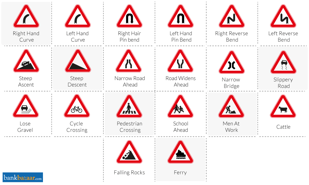 In India, traffic signs are broadly split into three categories: mandatory signs, cautionary signs and informative signs.